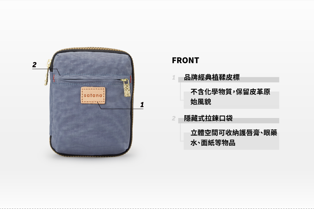▪ 前側隱藏式拉鍊袋,獨立收納空間